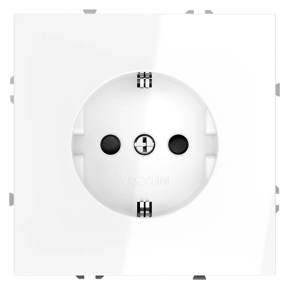 Розетка встраиваемая VOLTUM S70 с заземлением и защитными шторками 16А (белый глянцевый)